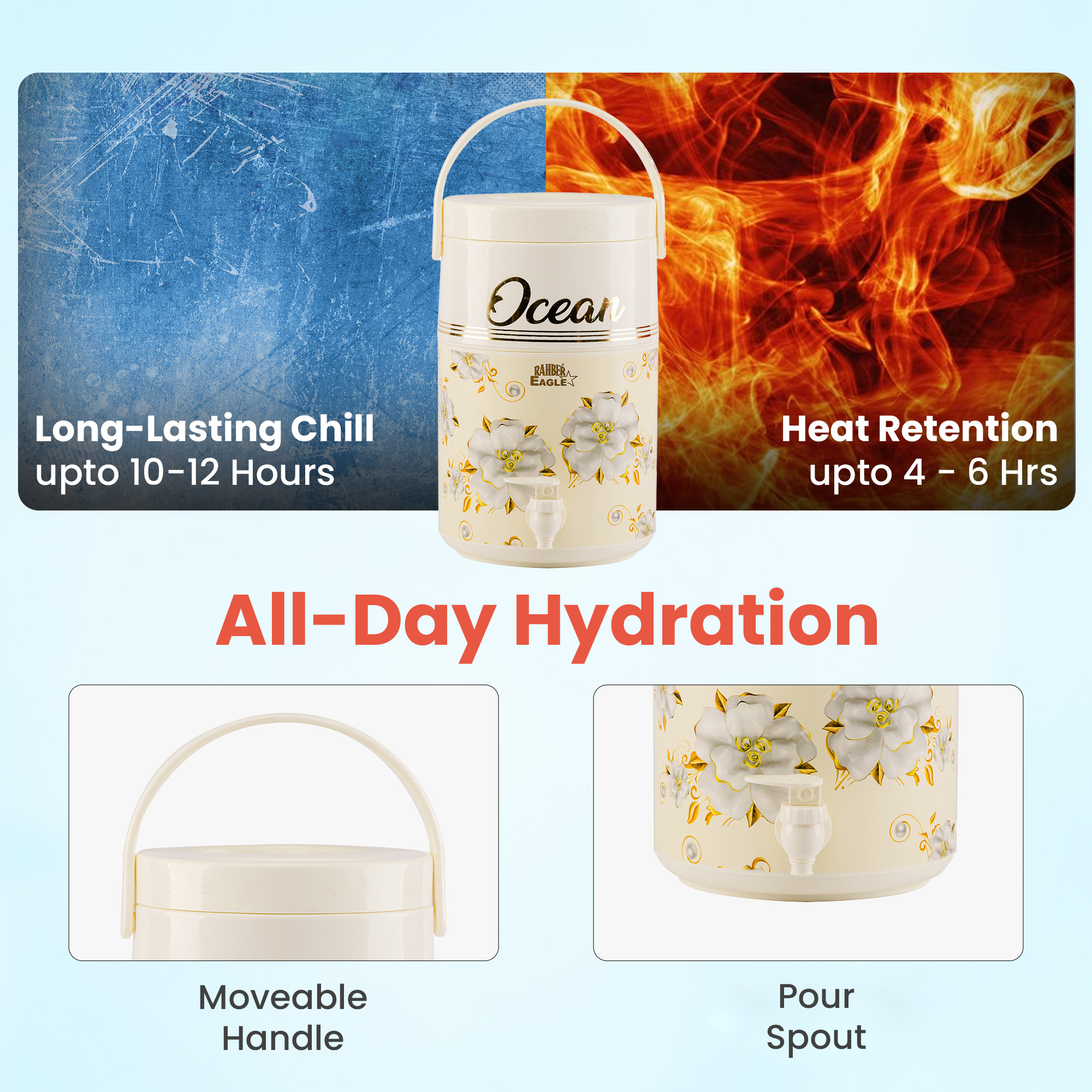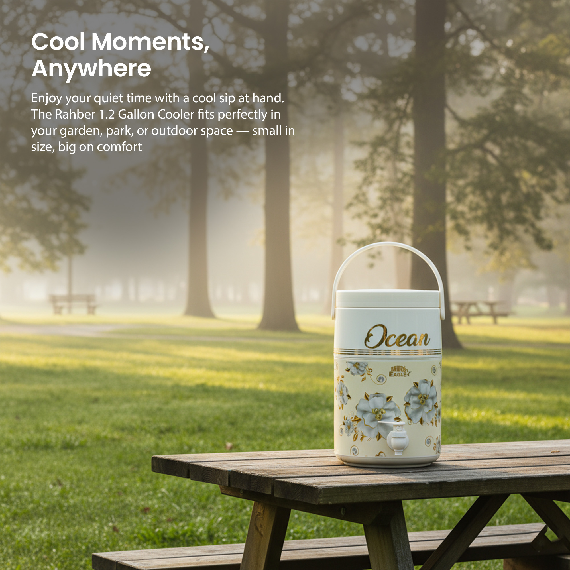 The Ocean 1.2 Gallon Water Cooler Jug keeps beverages cold for hours thanks to its efficient insulation and tightly sealed lid, making it ideal for outdoor sports, quick camping trips, and on-the-go hydration