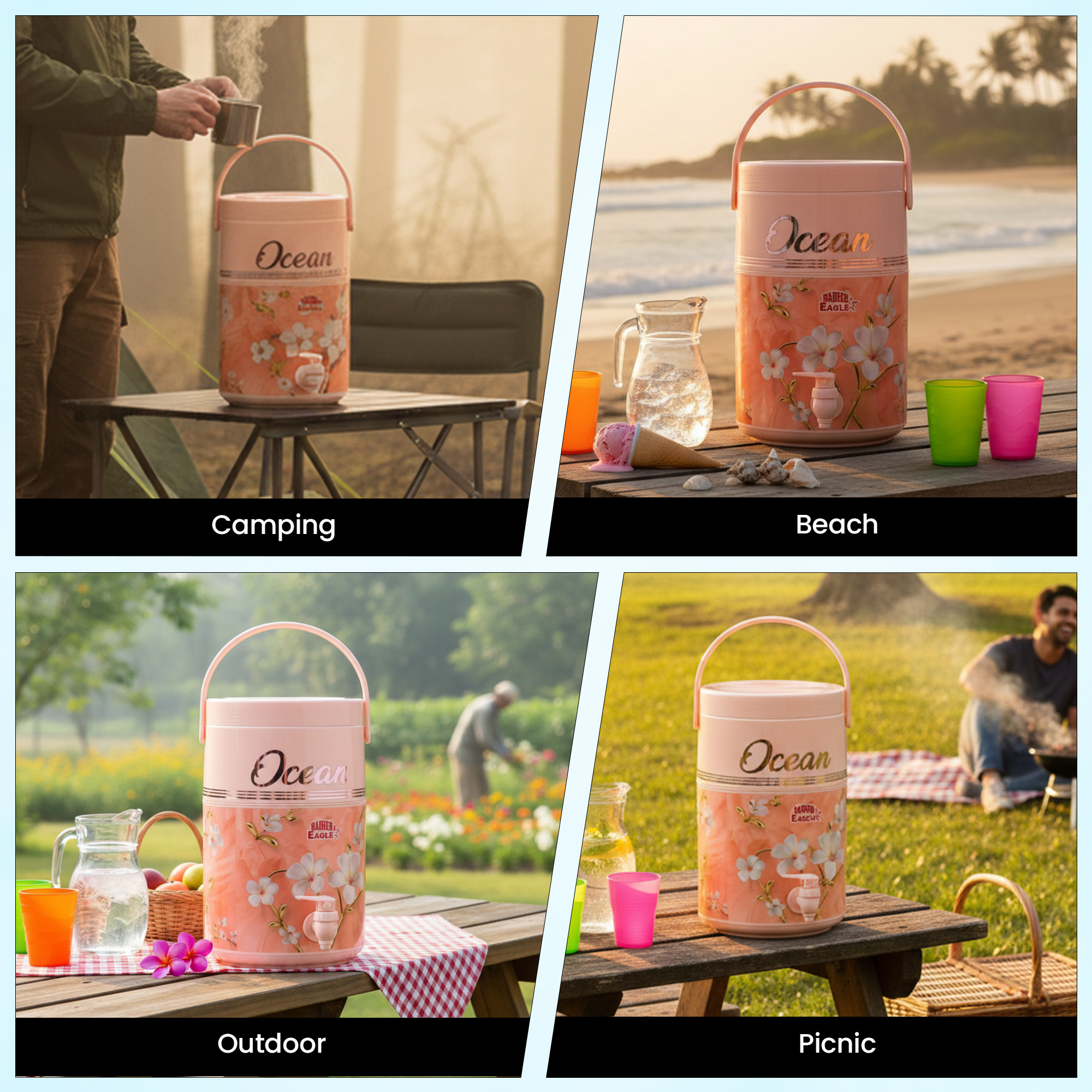Perfect for parks, pavilions, and open green spaces, this water cooler jug provides dependable hydration wherever friends and families gather. Its rugged design withstands grassy fields, shaded areas, and sunny spots alike