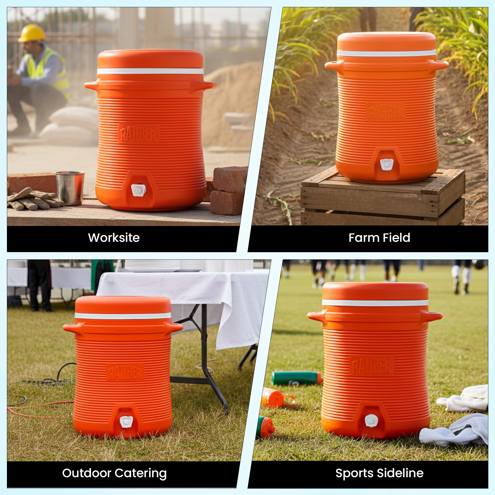 From sports fields to picnic spots, this large capacity beverage cooler thrives in tough environments. Its rugged body handles heavy use, frequent movement, and exposure to sun and heat, making it the perfect high-volume hydration hub for outdoor professionals, athletes, and recreational groups alike